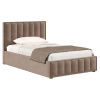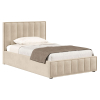 Мягкая обивка создает атмосферу уюта, а основание с ламелями заботится о комфортном сне. Изюминка модели — повторяющийся декор, который используется в оформлении спинки и изножья. Вертикальные строчки подчеркивают симметрию и правильные линии кровати.