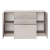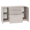 Три просторных ящика идеально подходят для белья и аксессуаров, а полки за распашными дверцами помогут сохранить в порядке текстиль и повседневную одежду. В дизайне использованы рамочные фасады и вертикальная фрезеровка, что создает привлекательный облик модели.