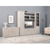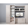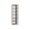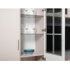 Комбинированный фасад дополнен фрезеровкой в нижней части и лаконичной ручкой в золотистом оттенке. Высоту полок можно менять, а значит, внутреннее пространство легко адаптировать для хранения самых разных вещей: от посуды и декора до коллекции книг. Тонированное стекло защищает содержимое шкафа от УФ-лучей и пыли.